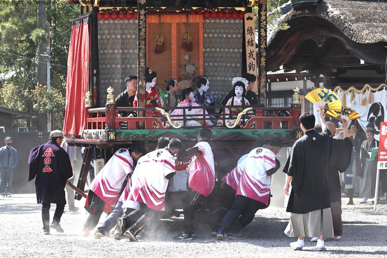 14日は4基の曳山が街を練り歩きながら長浜八幡宮に参集する「登り山」が行われ、中でも神社に入る時に行われるやり回しは圧巻だった。