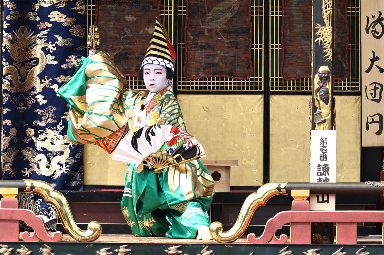 本日(ほんび)と呼ばれるクライマックイスの15日は、曳山を持つ組の中から4つの組が「子ども歌舞伎」を演じ長浜八幡宮に奉納した。