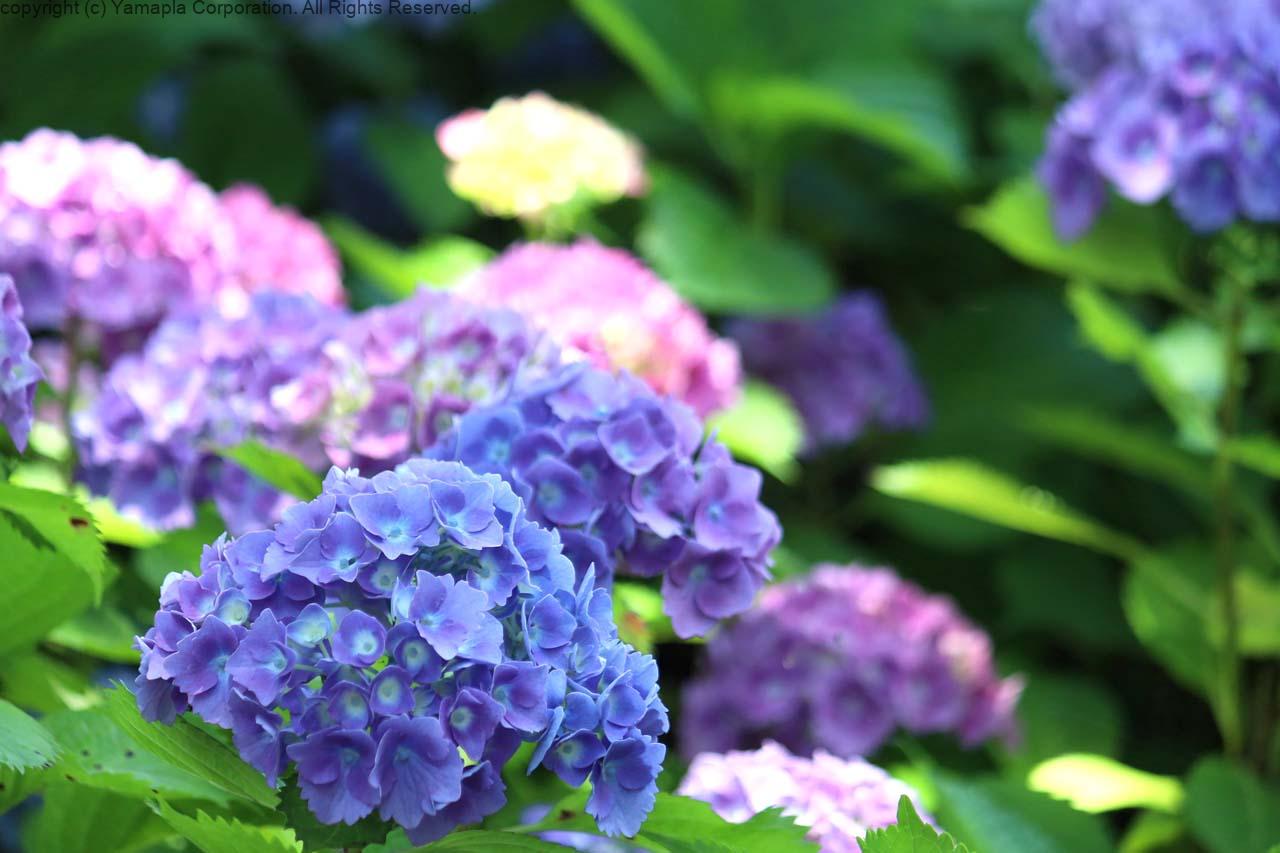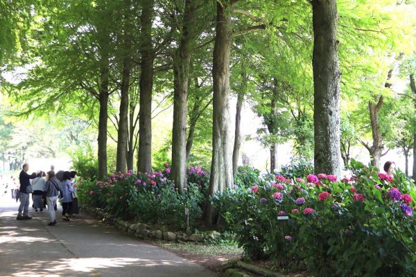 日本と西洋のあじさいがそれぞれ50品種、合計1万本が植栽されている。この時期を心待ちにしていた多くの人たちが鑑賞に訪れ、思い思いにスマホやカメラでシャッターを切る姿が見られた。