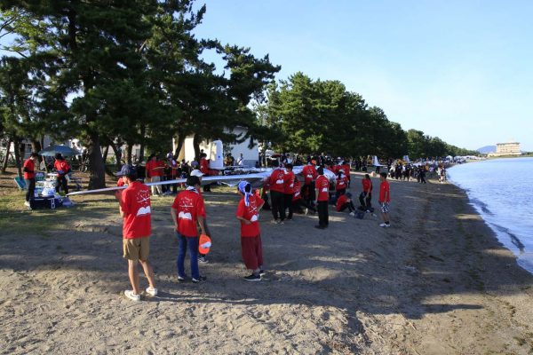 自作の人力飛行機で飛距離を競う「第46回鳥人間コンテスト2024」が彦根市松原の琵琶湖岸で7月27・28両日行われ、社会人や学生チームなど31組が参加した。