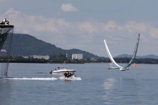 35度を超える猛暑の中、若人たちは青春の夢を大空に届けたいと熱のこもった競技を繰り広げ、人力プロペラ機部門では東北大学Windnautsが優勝。パイロットを務めた登藤成琉君(20)は、細いしなやかな体ながら力強い滑走で21.82369kmを飛行した。