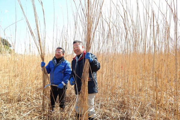 刈り取られたヨシは、大阪・関西万博のユニフォームやパピリオンの屋根の素材にも活用されるという。