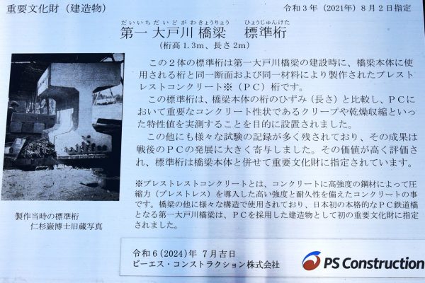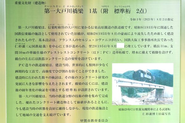 旧国鉄信楽線の施設として1954(昭和29)年8月26日に竣工し、2021(令和3)年5月に国の重要文化財に指定された。当時最先端だったプレストレストコンクリート(PC)※の技術を用いて造られた国内初のコンクリート橋として価値が高い。