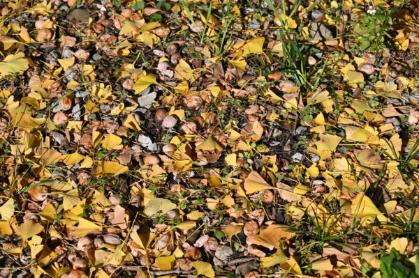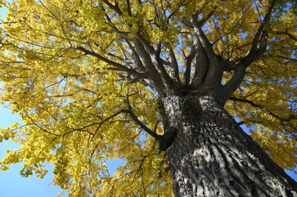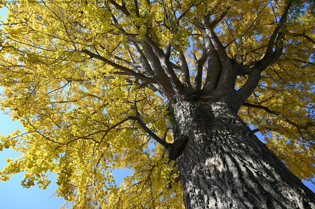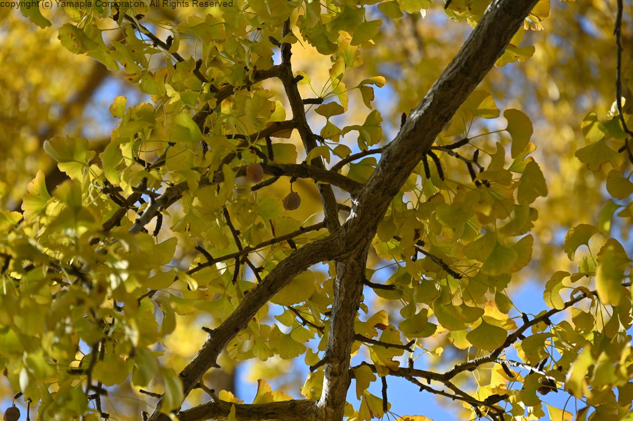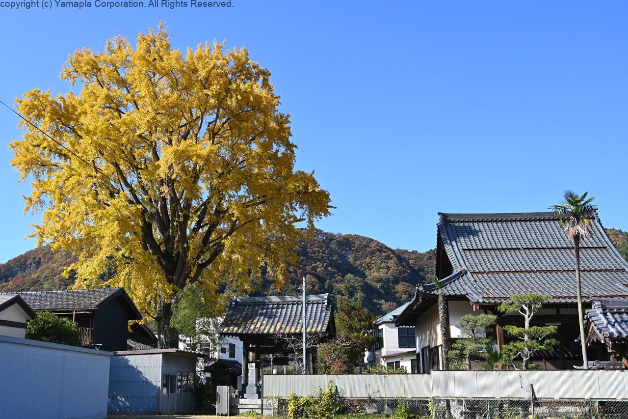 了徳寺(米原市醒井)の境内にある国の天然記念物「オハツキイチョウ」が黄色に輝いている。