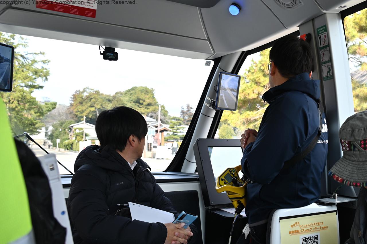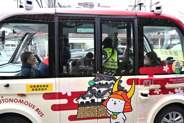 自動運転EVバスの実証実験が彦根市で一般客を乗せて運行している。