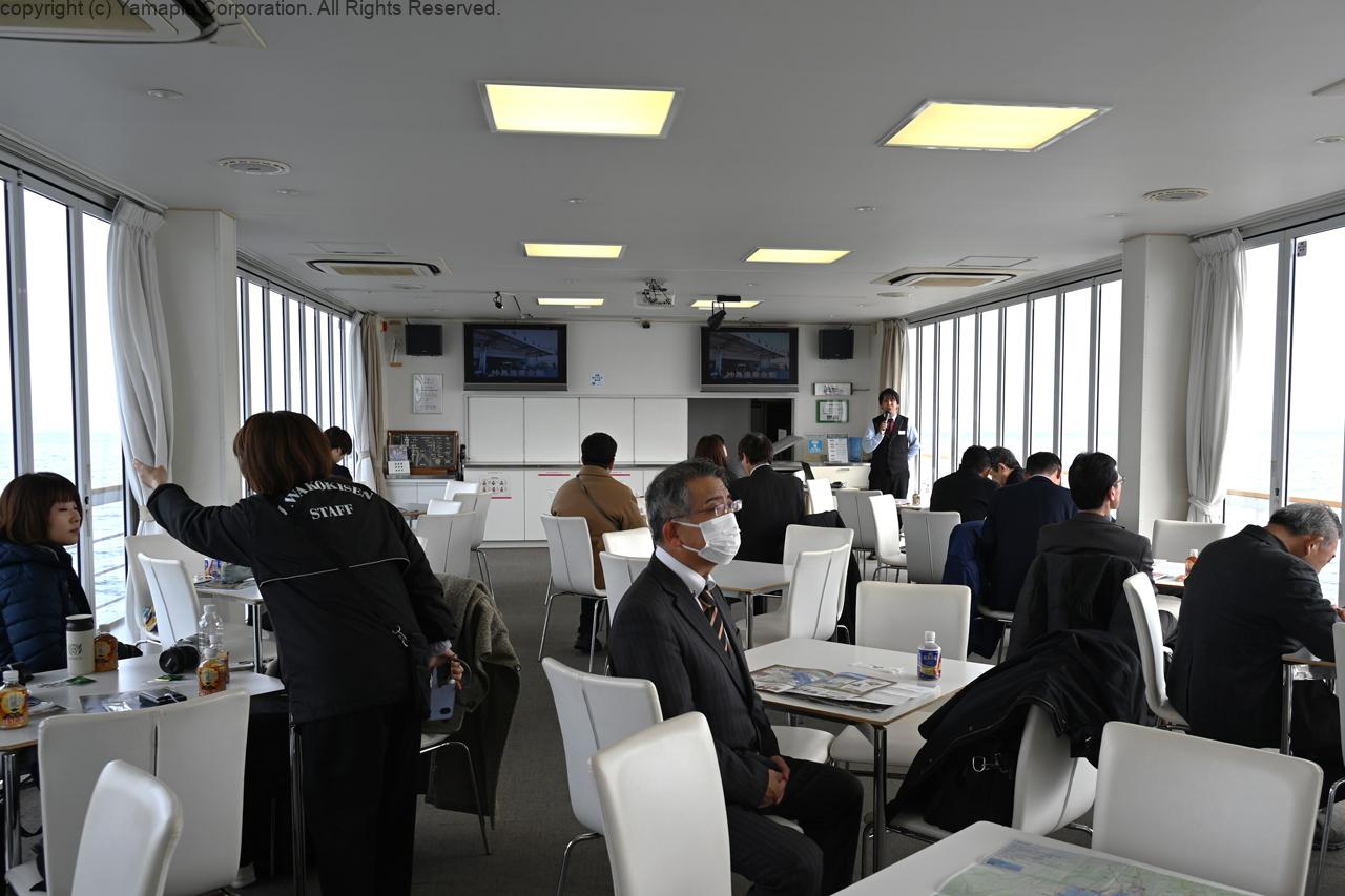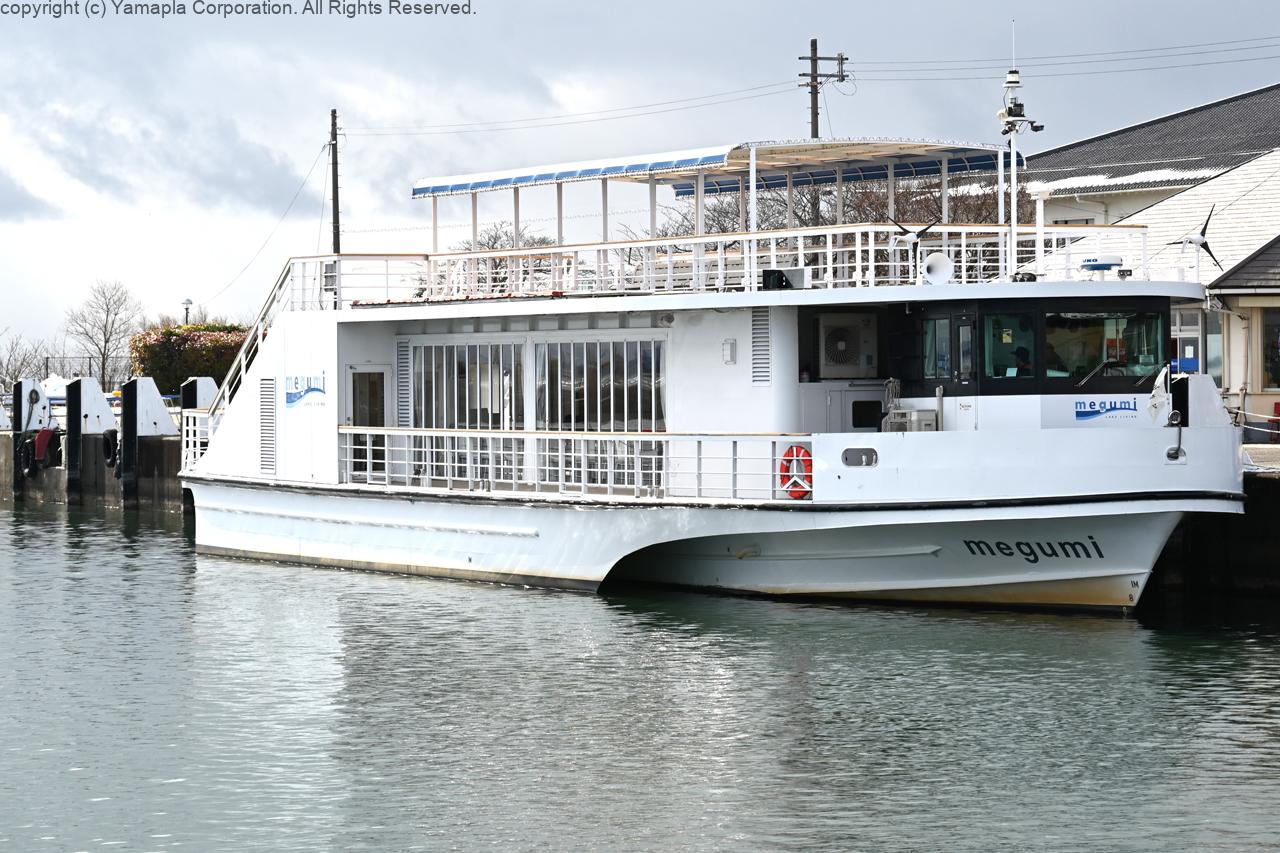 1983(昭和58)年の運航開始から、今年で42回目。大津港と長浜港を片道約2時間半で結ぶ冬季限定のコースで、雪化粧した比良山系や竹生島など、湖上クルーズならではの冬景色が楽しめる。