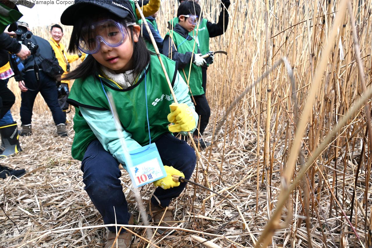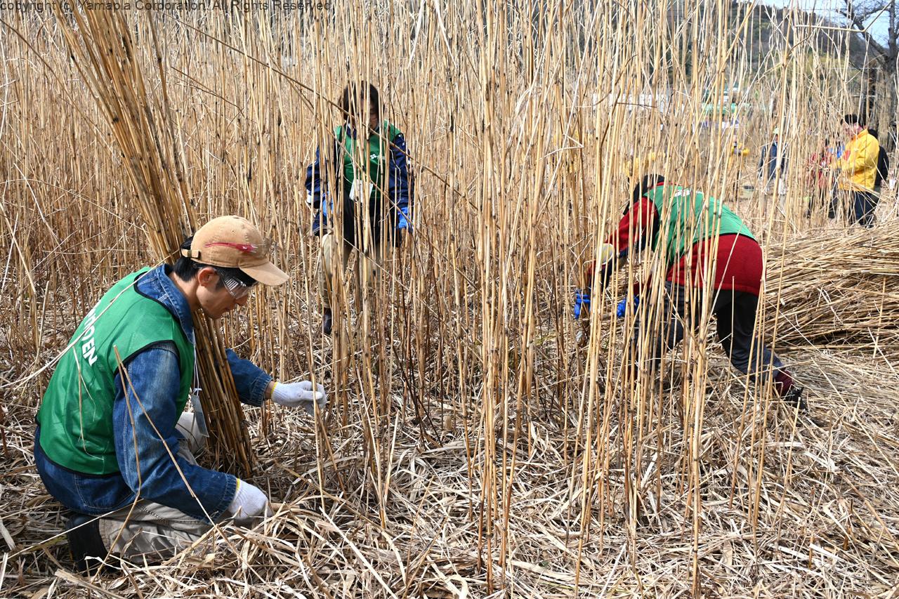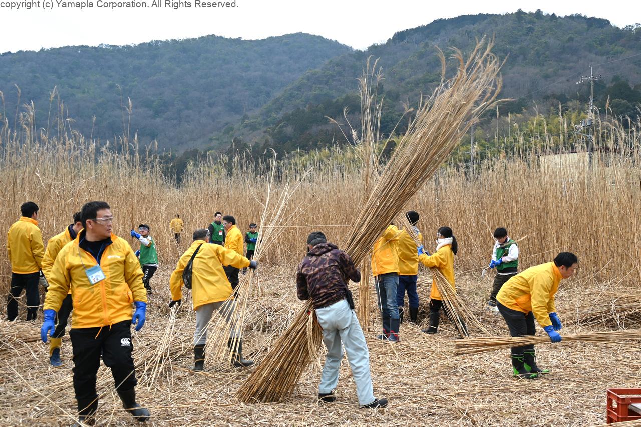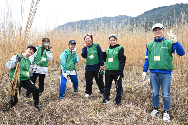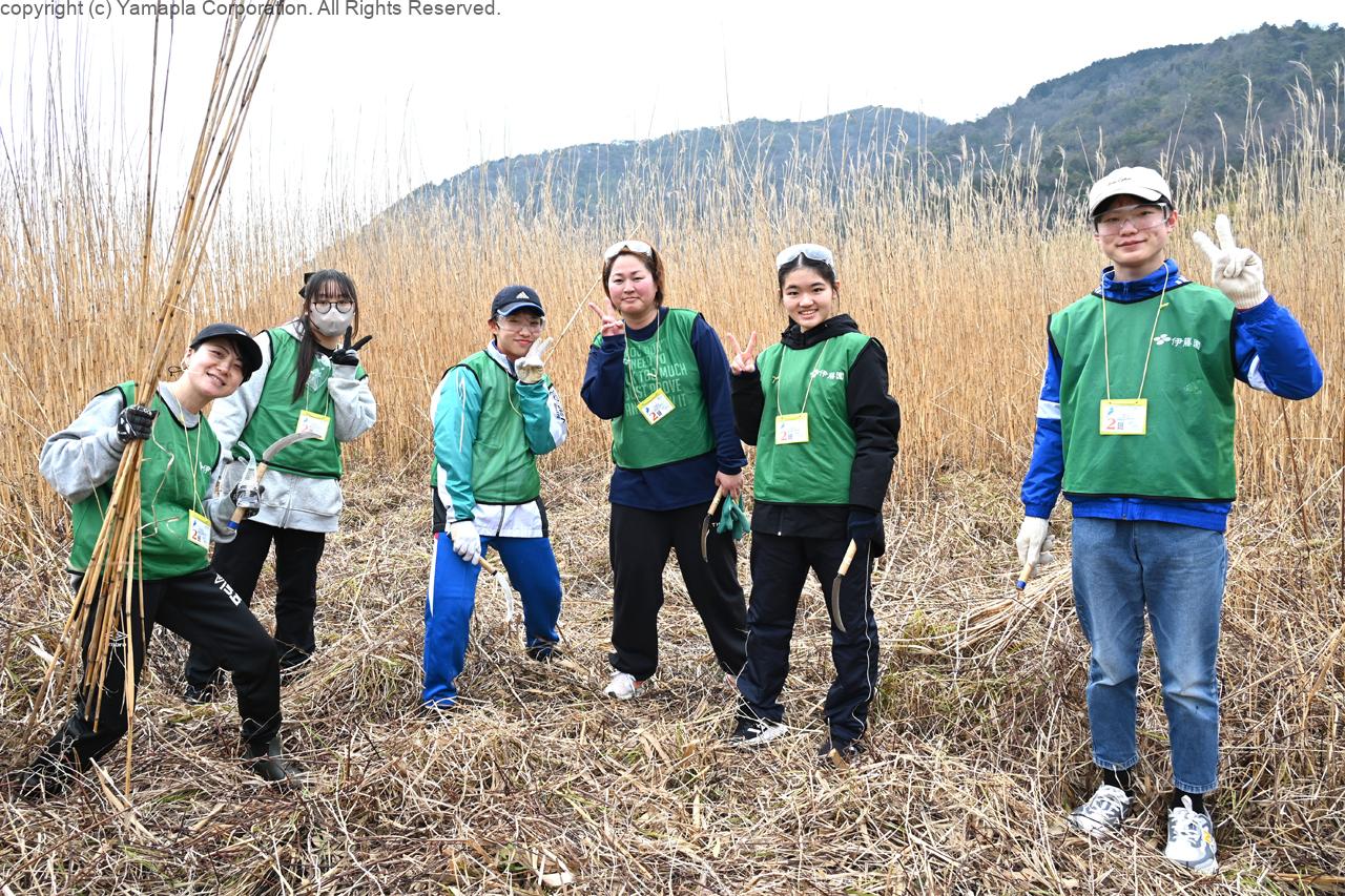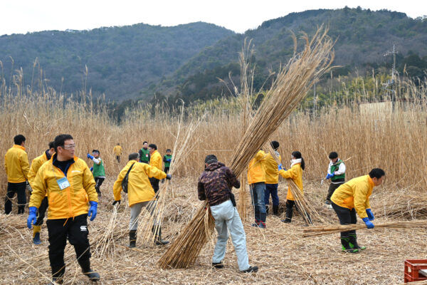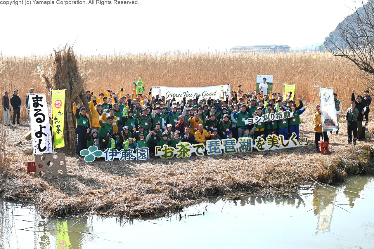 琵琶湖の環境保全活動の一環として大手飲料メーカー伊藤園が主催するヨシ刈り活動で、2008年から継続的に実施し今年で17回目を迎えた。同社社員や一般参加者に加え今年は地元や近隣の中学生なども参加し、総勢170名がヨシ刈りに取り組んだ。