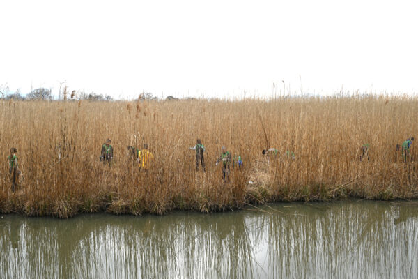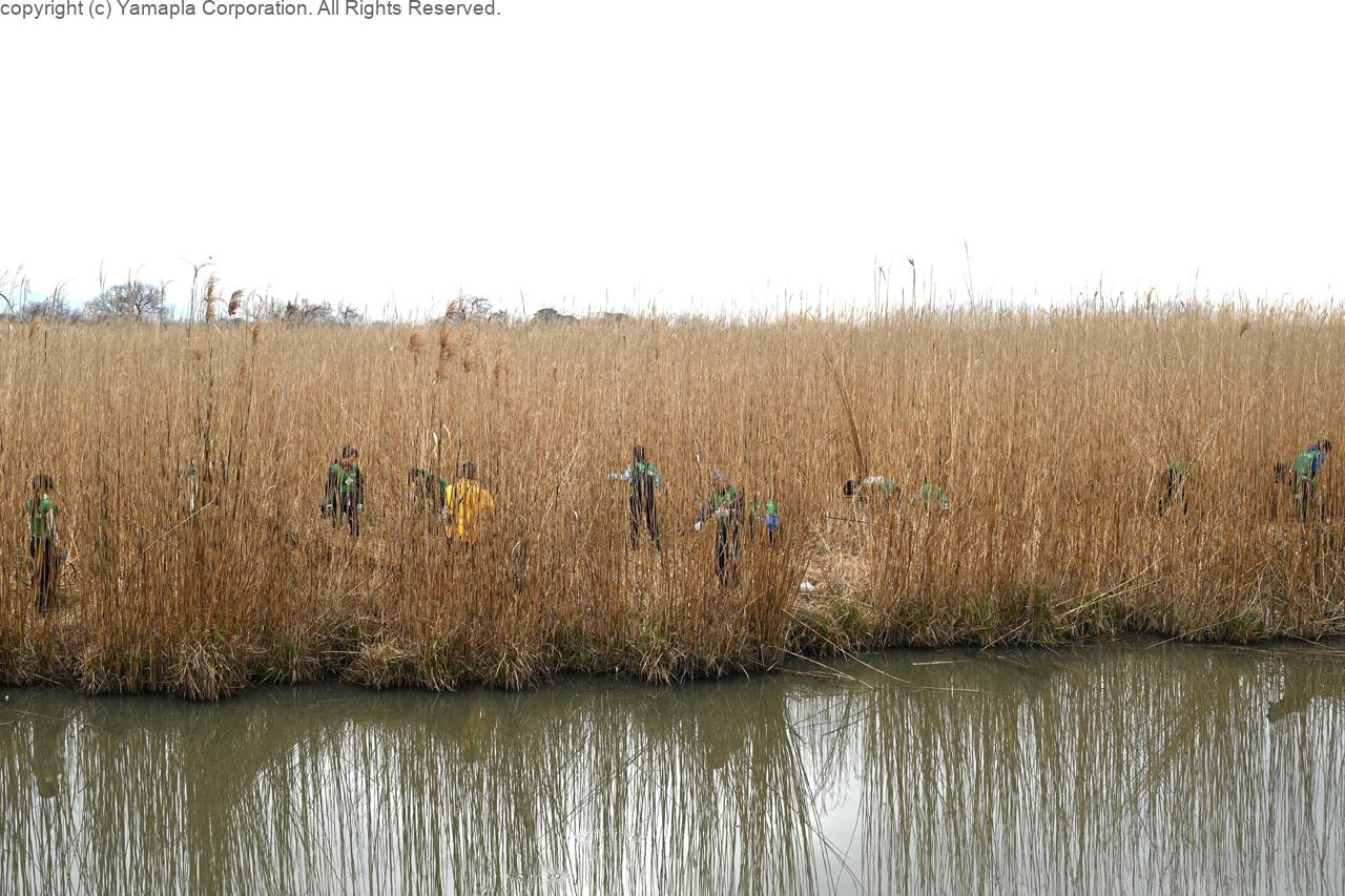 ヨシ刈りを通じて琵琶湖の環境を守る催しが2月15日、近江八幡市円山町付近一帯の西の湖で行われた。