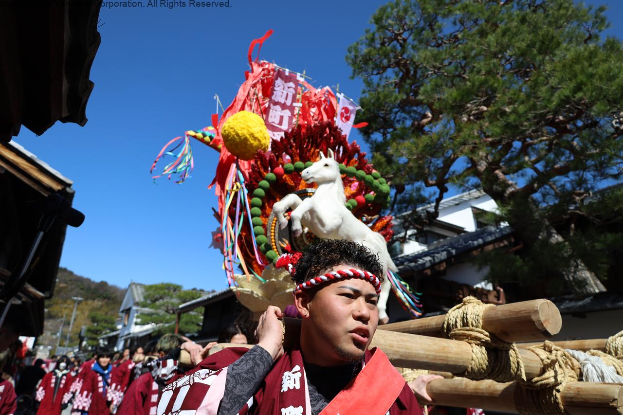 左義長まつりは、安土城下から近江八幡に移り住んだ町衆によって再開したと伝えられ、約440年の歴史がある。