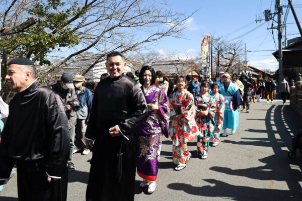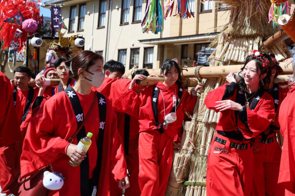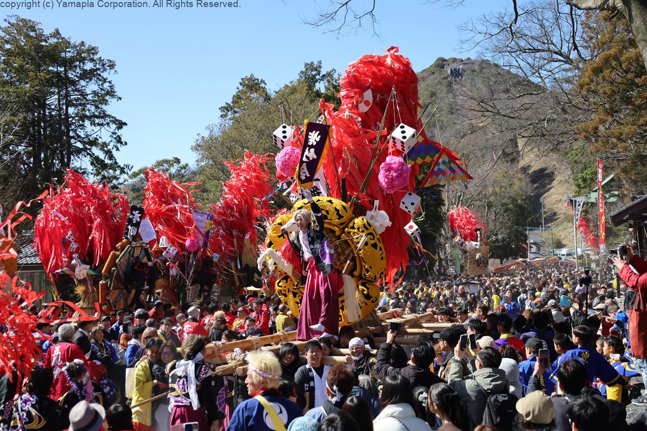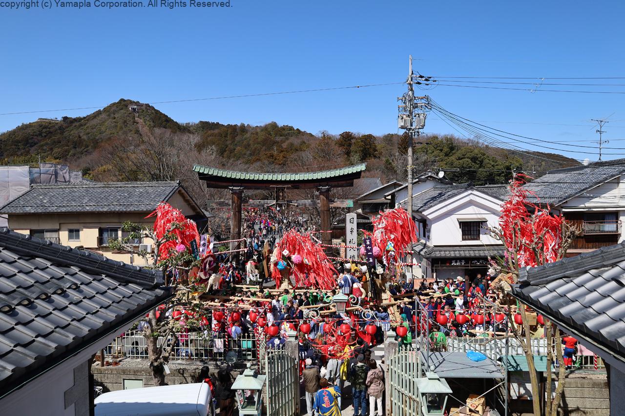 無病息災と五穀豊穣を願う「左義長まつり」が14・15の両日、近江八幡市宮内町の日牟礼八幡宮一帯で行われた。