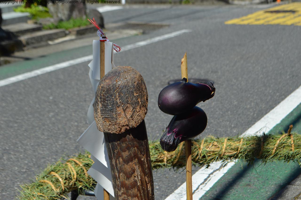 「ぼんのこ・へんのこ」といわれる男女のシンボルを集落の子どもたちが担ぎ、「ぼんのこ、へんのこ、さくよもんのなすびヤーイ」と囃したてながら、太皷とともに集落を練り歩いた。