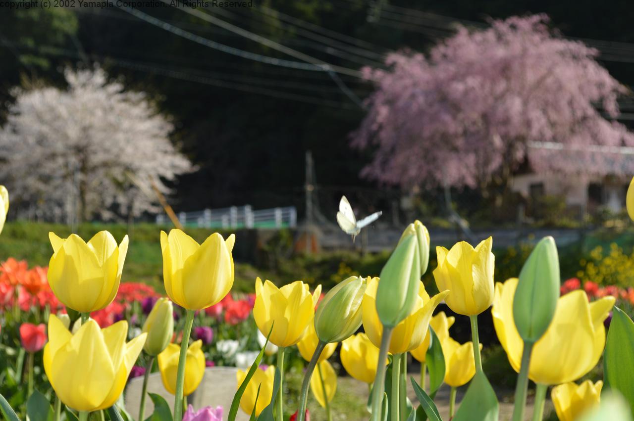 米原市上丹生(かみにゅう)のチューリップ園で、約20000本のチューリップが見頃を迎えている。 地域を盛り上げようと地元の有志が集まり、活動を応援する人達からの募金にも支えられ2004年から始まった。 4月下旬ごろまで楽しめる。入園無料