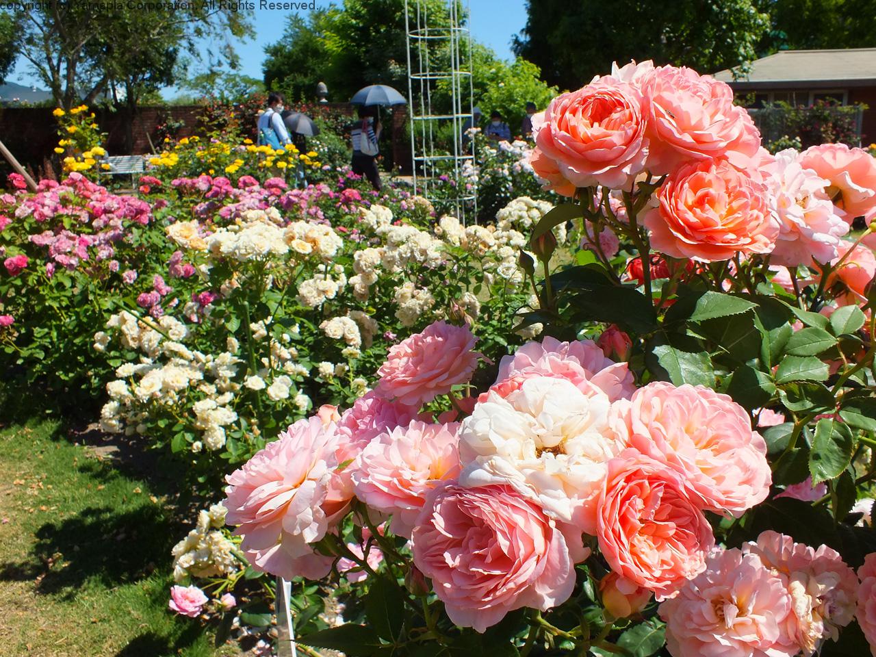 同園は新型コロナウイルス感染予防のため休園していたが、5月30日(土)から営業を再開している。園内には甘いバラの香りがたちこめ、たくさんの人が訪れている。