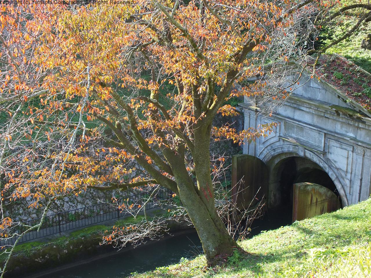 大津市三井寺近くの桜の名所、琵琶湖疏水はすっかり秋色に。びわ湖疏水船が期間限定で運航しており、京都蹴上まで疏水沿いの景色が楽しめる。11月30日まで。