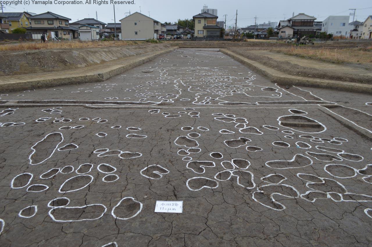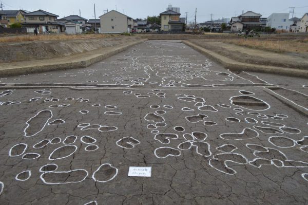 栗東市北中小路の霊仙寺(りょうせんじ)・綣(へそ)遺跡で昨年末、発掘調査現地説明会が行われた。