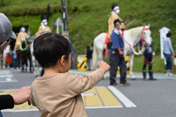 五穀豊穣や天下泰平を祈る多賀大社の年中行事の中でも最も重要な大祭で、鎌倉時代から約800年続く伝統行事だ。武家や公家などの装束に身を包んだ氏子ら総勢約350人が、「お渡り」と呼ばれる行列をつくって神社周辺を練り歩いた。40頭ほどの騎馬の供奉(ぐぶ)が行われることから「馬まつり」ともよばれている。