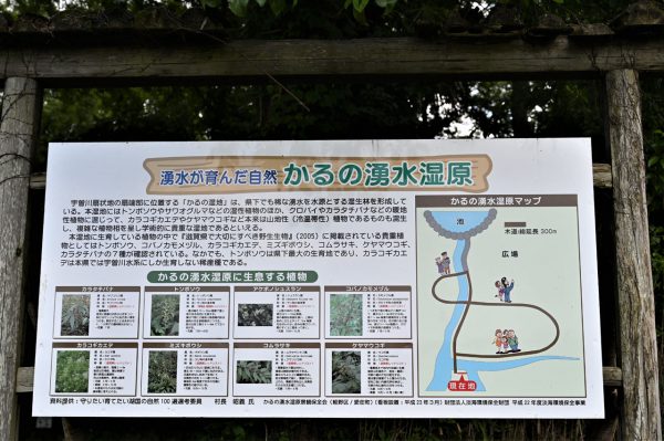 鈴鹿山脈を水源とする宇曽川の伏流水が集落を流れ、軽野湿地と呼ばれる湿地帯(0.3ヘクタール)は「守りたい育てたい湖国の自然100選」に選ばれている。湿原入口には希少植物の説明を記した看板が設置され、気軽に自然観察できるようになっている。
