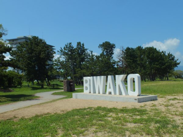 守山市今浜町の第2なぎさ公園に「BIWAKO」の文字をかたどったモニュメントが6月下旬設置された。