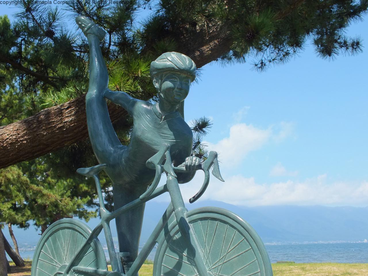 公園の中にはサイクリストの聖地碑があり、サイクリストが立ち寄る有名スポットとなっている。