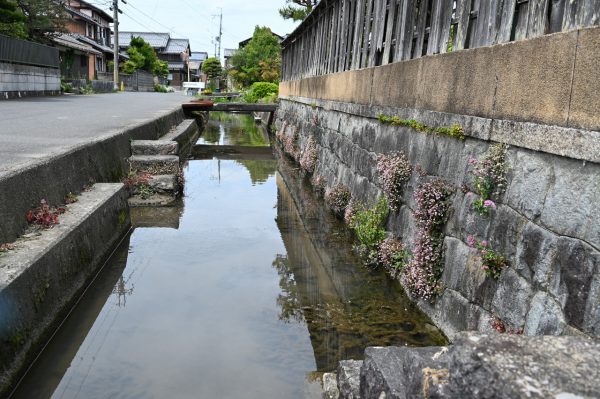 水路が縦横に張り巡らされた水郷集落、東近江市伊庭(いば)。