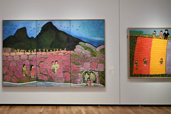 熊本県出身の画家塔本シスコは、50歳を過ぎてから本格的に絵を描き始め、枚方市の団地の一室で制作に励んだ。作品の主題は身近な草花や動物たちで、自身の経験を色鮮やかにパワフルに描き出している。