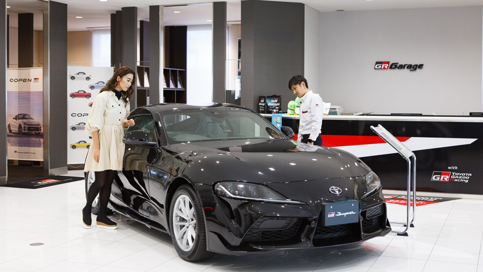 「ウエルコム栗東」の2階にある「GR Garage」は、トヨタのスポーツブランド「GR」に特化したショールームです。GRオーナーに限らず誰もが気軽に立ち寄って、専門スタッフとレースやカスタムなど、クルマのすべてについて熱く語り合えるショップです。