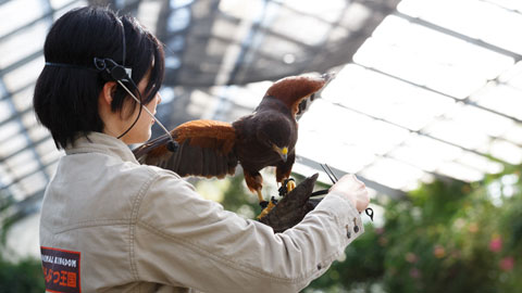 猛禽類やインコたちが飛び交う「バードパフォーマンスショー」。パークで1番人気のショーイベントです