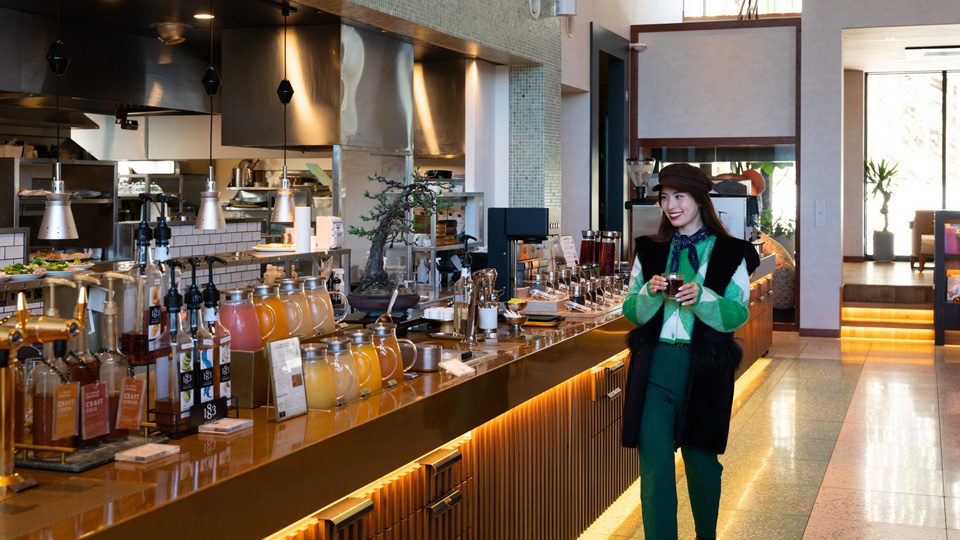 お店のイチオシは、全長10mのビバレッジバーカウンター