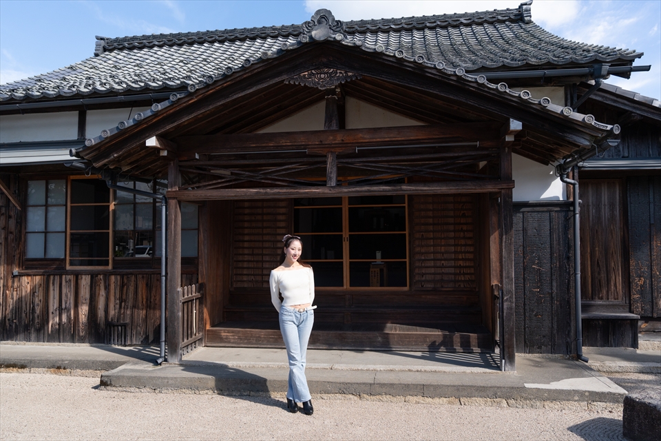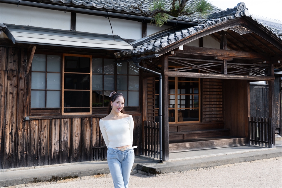 建物前の水路に鯉が泳ぎ、静かな町並みが訪れる人を迎えます