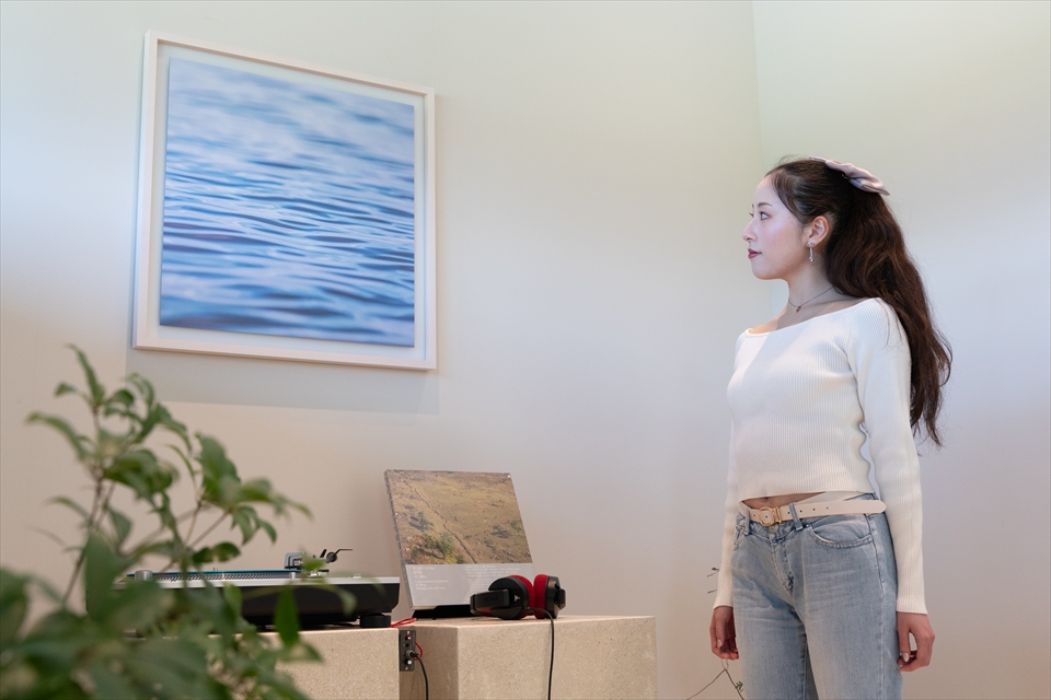 滋賀の風景写真。その情景から生まれたオリジナル曲が一枚のレコードに収められ、BGMで流れています