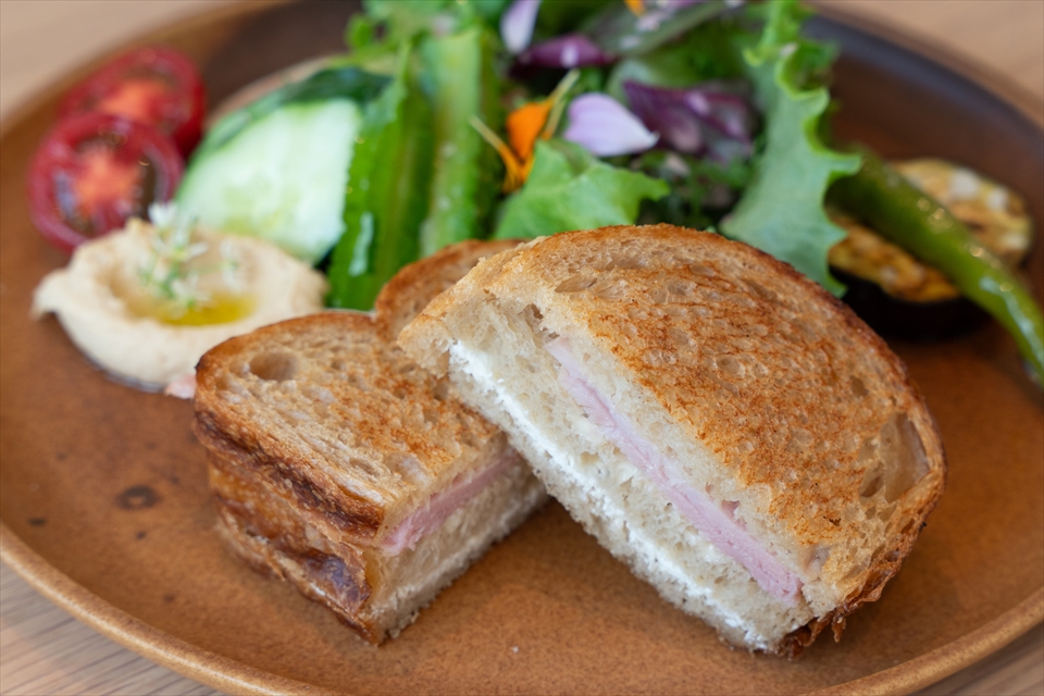 「サンドイッチプレート」は、玄米パンにヤギのチーズがサンドされています
