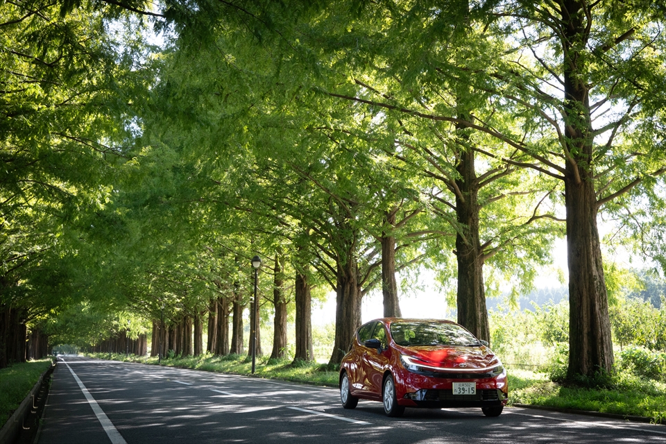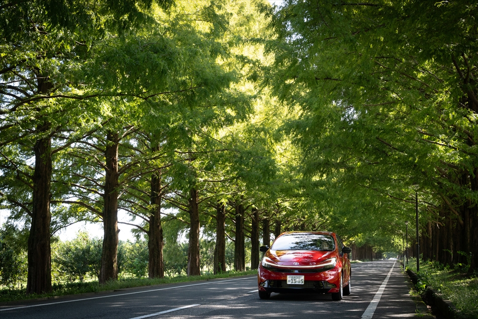 約2.4kmにわたって続く、メタセコイア並木を爽快にドライブ