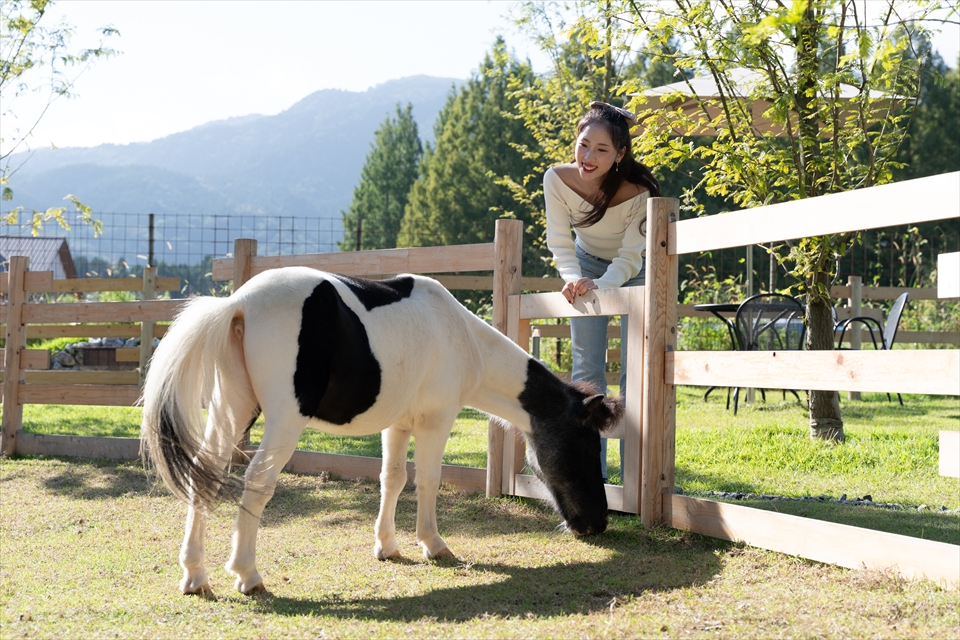 メタセコイア並木のすぐそばにある「メタセコイアと馬の森」は、馬たちと間近でふれあえる観光養老牧場。敷地内は、引退競走馬(サラブレッド)やミニチュアホースたちがのびのびと暮らしています。乗馬体験や厩舎見学ができ、馬たちの穏やかなまなざしや優しい仕草に、思わず心が和みます。建物は自然と調和した開放的なデザイン。木漏れ日に包まれながら、カフェでゆったりとした時間を過ごすこともできます。 ※掲載のメニューは2025年10月取材時のものです