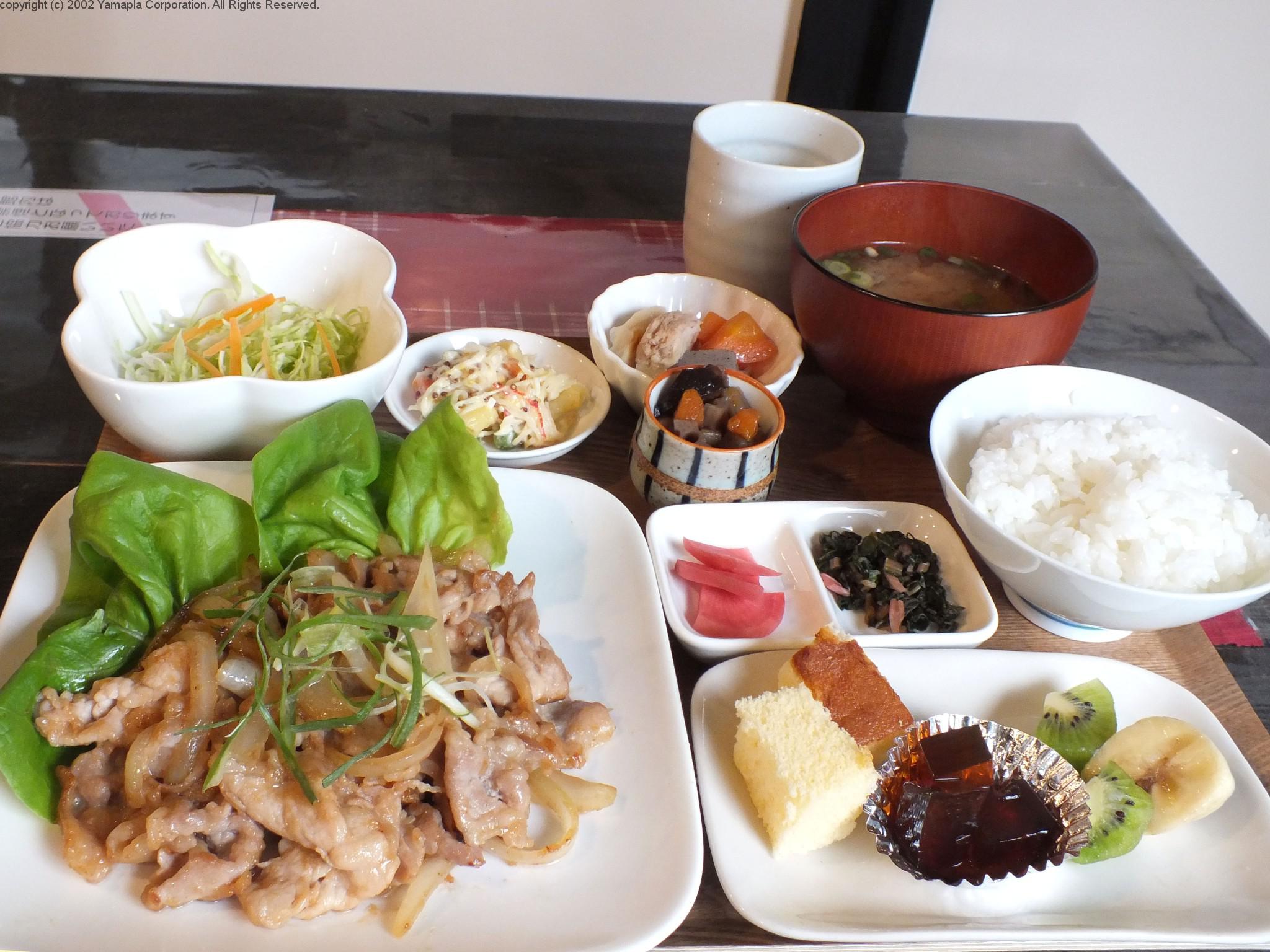 取材日のメインは豚の生姜焼き。大豆の煮物や味噌汁などの家庭的なおかずと、地元、在士産のコシヒカリを使ったふっくらつやつやのご飯は相性抜群!思わず「お替わり!」と叫んでしまうおいしさ。ご飯のお替わりは無料なので、お腹いっぱい食べられるのも嬉しい。近江牛100%のハンバーグや牛すじカレーも人気だ。