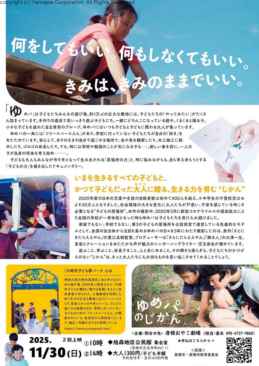 2025年11月30日(日)旭森地区公民館 集会室で、ドキュメンタリー映画「ゆめパのじかん」上映会が開かれる。