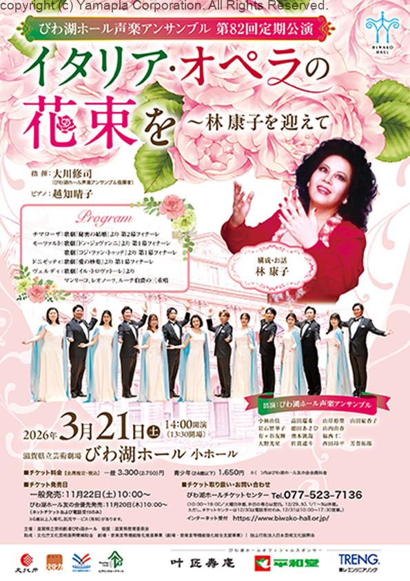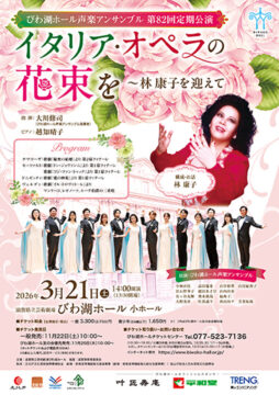 2026年3月21日(土)びわ湖ホール・小ホールで、びわ湖ホール声楽アンサンブル 第82回定期公演「イタリア・オペラの花束を~林 康子を迎えて」が開かれる。