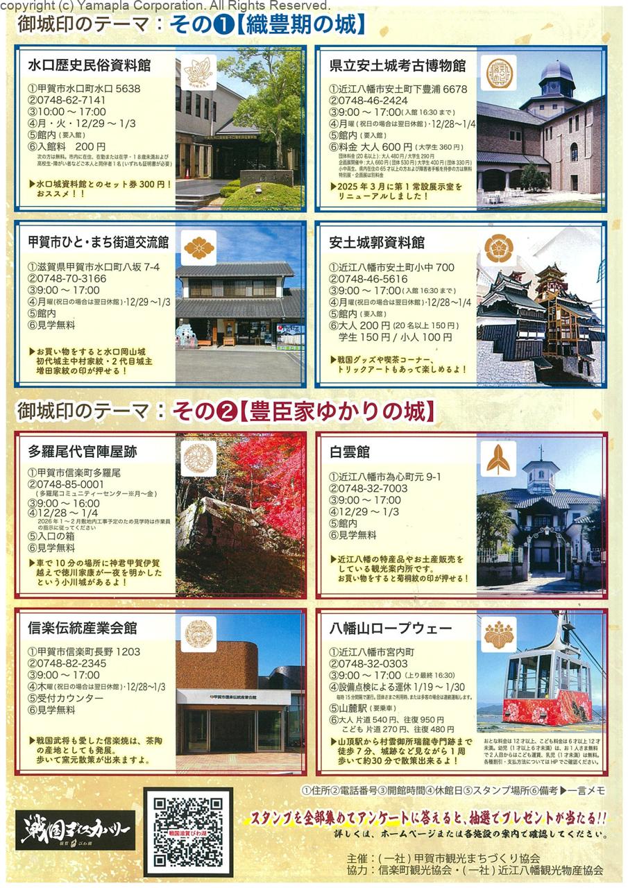 2026年3月31日(火)まで、甲賀市と近江八幡市のコラボ企画の「御城印スタンプラリー」を開催している。