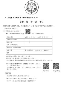※特別ガイド代、安土城考古博物館入館料、安土城跡入山料、昼食代