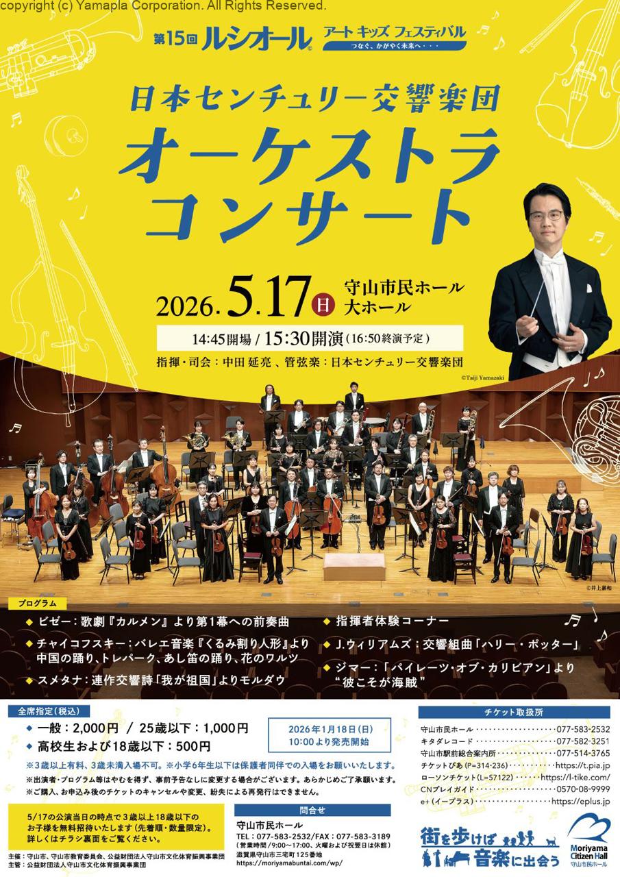 2026年5月17日(日)守山市民ホール・大ホールで、「第15回 ルシオール アート キッズフェスティバル オーケストラコンサート」が開かれる。