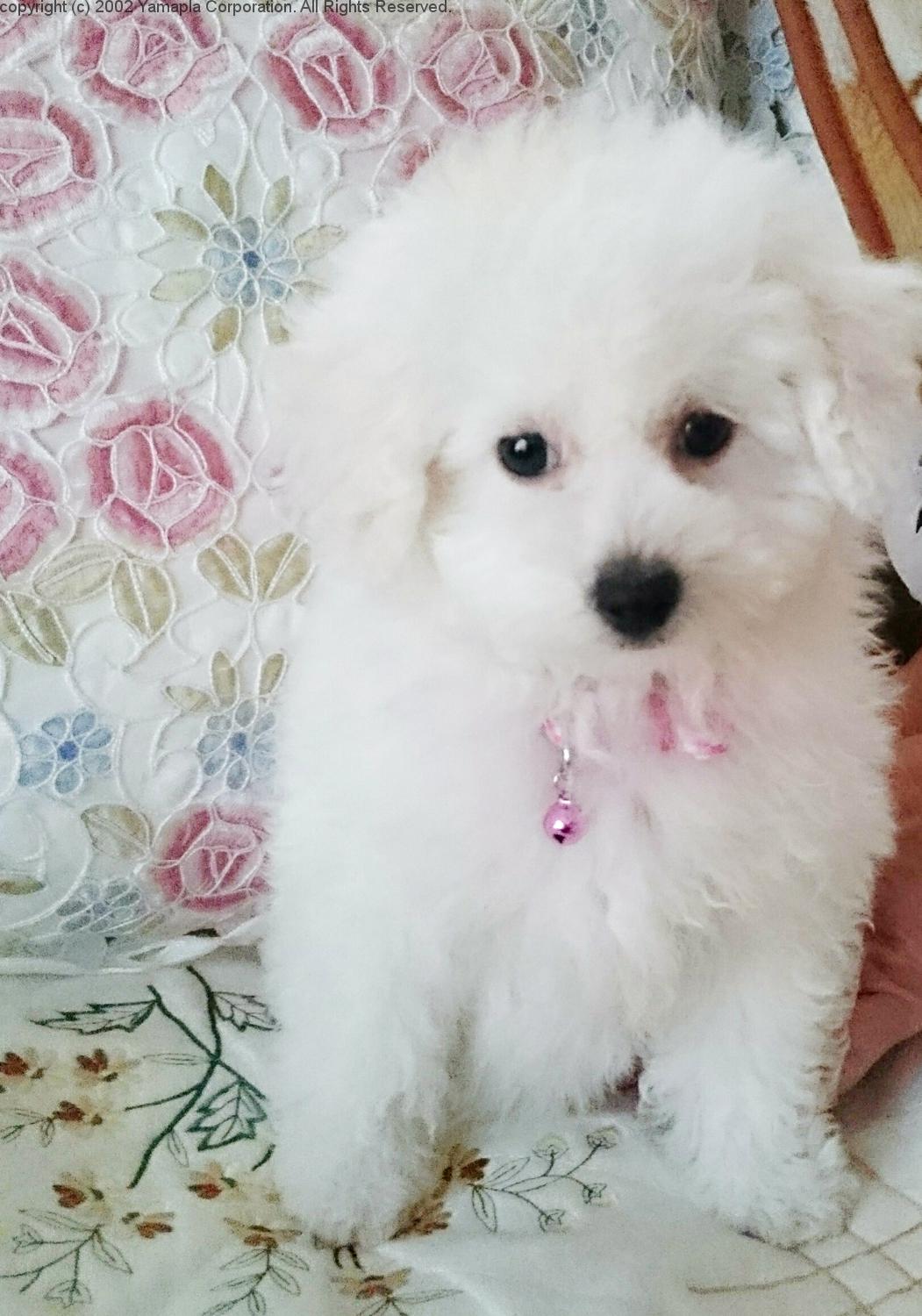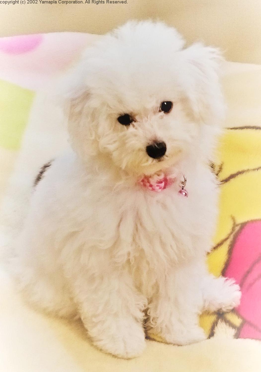 ●名前:ぽぽちゃん ●種類:トイ・プードル(ホワイト) ●年齢:0歳3カ月 ●性別:メス ●好きなもの:ライオンとウサギのぬいぐるみ