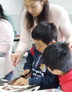 教室では龍谷大学理工学部の講師・遊磨正秀さんが「魚よもやま話」を講義。また琵琶湖博物館学芸員の秋山廣光さんがビワコナマズを解剖し、魚の体の仕組みを説明。魚に触れたり味わったりするだけでなく、専門的な知識もわかりやすく解説され、子どもたちは目を輝かせていた。