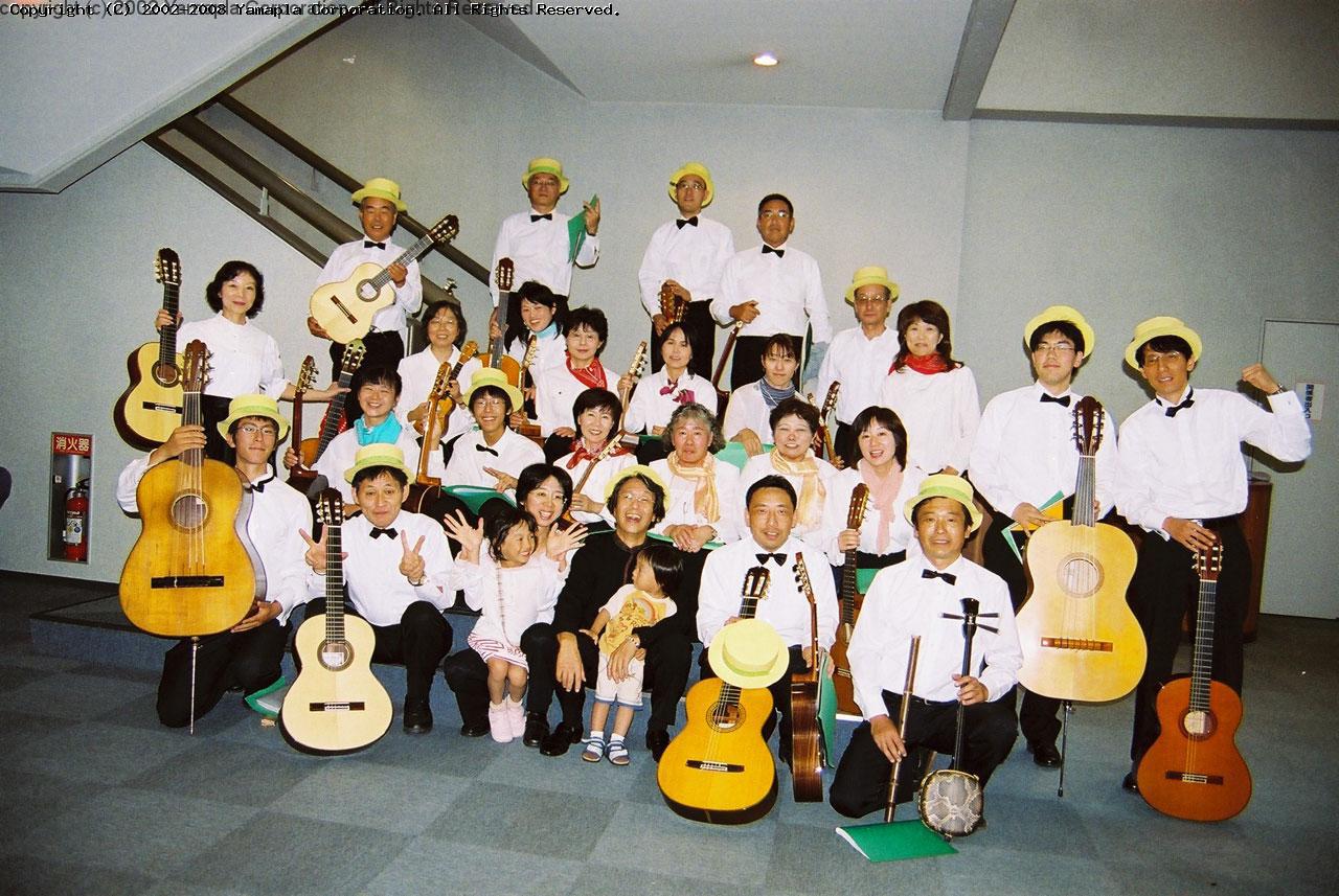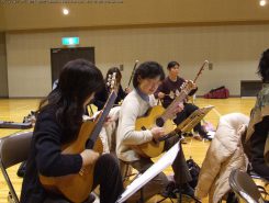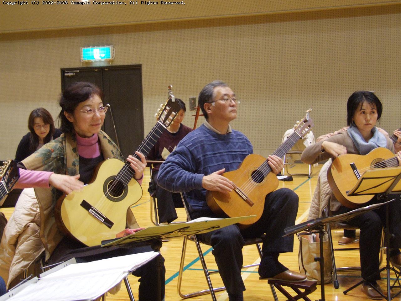 「滋賀市民ギターオーケストラ(以下、市民オーケストラ)」は、05(平成17)年に小山さんが近江八幡市でギター教室を開校したのを機に発足した。発足に先立つ01(平成13)年、新潟県にある大島村(当時)で小山さんが作った1000人編成の「我が楽多オーケストラ」が、「千人の力」というNHK BSの番組でグランプリを取った。その時に参加した人たちが「こんな楽しい経験は生涯で初めて」と話すのを聞いたことが、市民ギターオーケストラの結成につながった。結成当初は6~7人だったメンバーも現在は30 人。中学生から70 歳代までの音楽好きの仲間が集る。