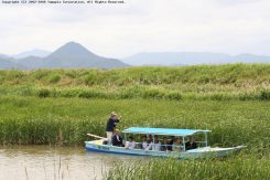 家棟川エコ遊覧船は船上から川や自然を楽しむと共に、ごみが捨てられている家棟川の現状を野洲市民の皆さんに知ってもらおうと、昨年6月から運航を開始。川の歴史や川にすむ生物などの話を聞きながら、櫓こぎ船に乗ってゆっくりと川を遊覧する。地元の漁師や農家、学校の先生や画家といったさまざまな経歴を持つ24人が運営。また「野洲市里川づくり委員会」に所属し、四季折々の風情が感じられるように柳の木を植えたり、ホタルが再び生息できるように清掃活動を行うなど環境保全活動にも力を注ぐ。今年1月には自然・人・地域が輝く暮らしや仕事のスタイルを提案する「湖国まるごとエコ・ミュージアム」づくりに貢献したことが認められ、「まるエコおおきに優秀賞」(主催:滋賀県など)を受賞した。